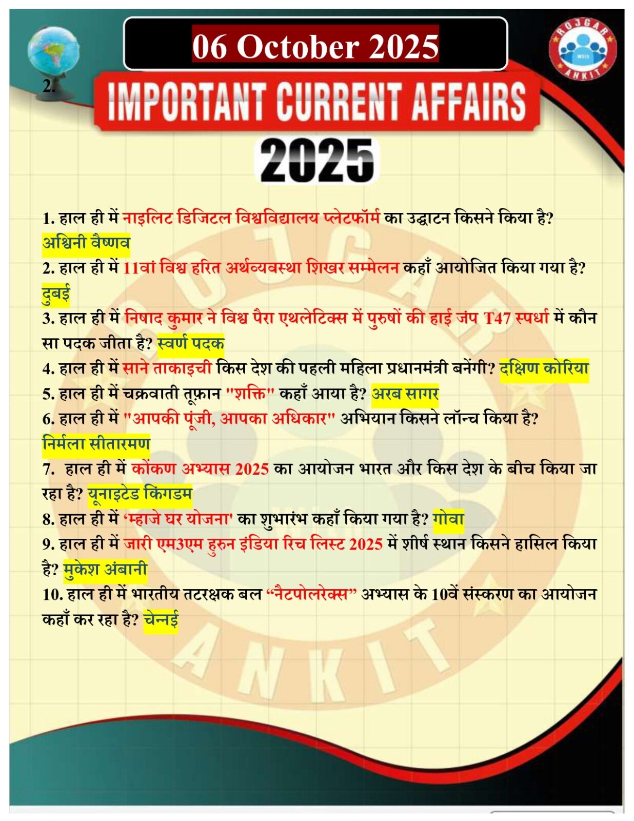 Purchase Current Affairs Book :  Current Affairs Magazine (Rojgar Patrika) Updated 2025
