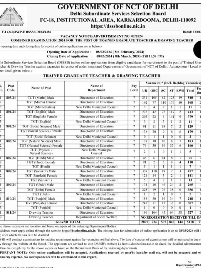 Delhi DSSSB Senior Personal Assistant, Personal Assistant & Junior Judicial Assistant Recruitment 2024